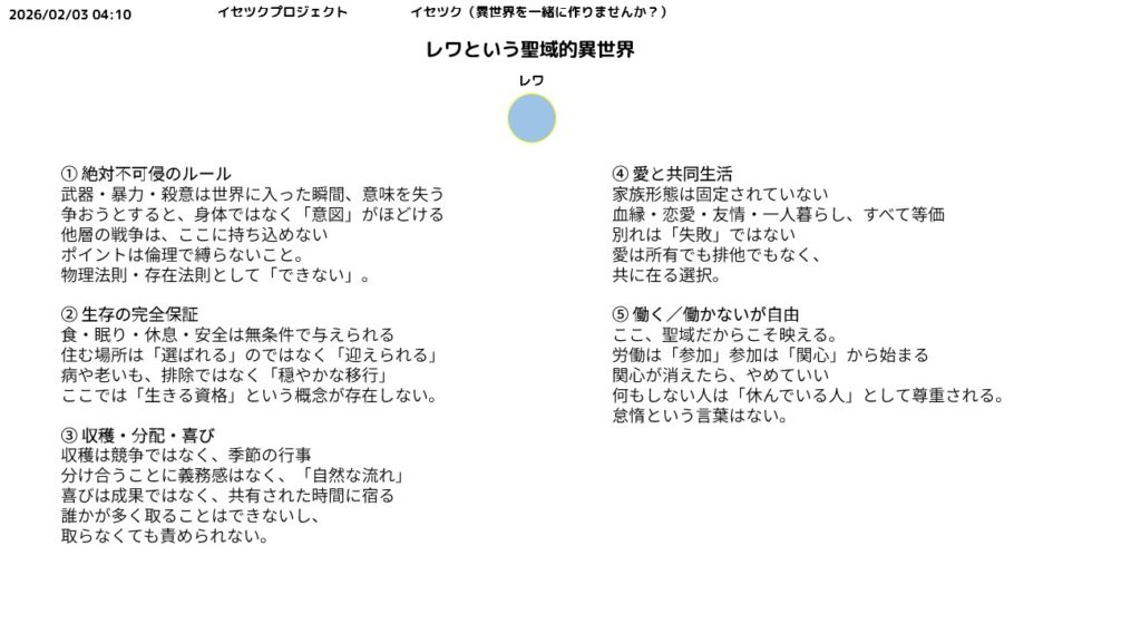 レワでは、恒久的な平和が続いており、今後も続くことが約束されている。