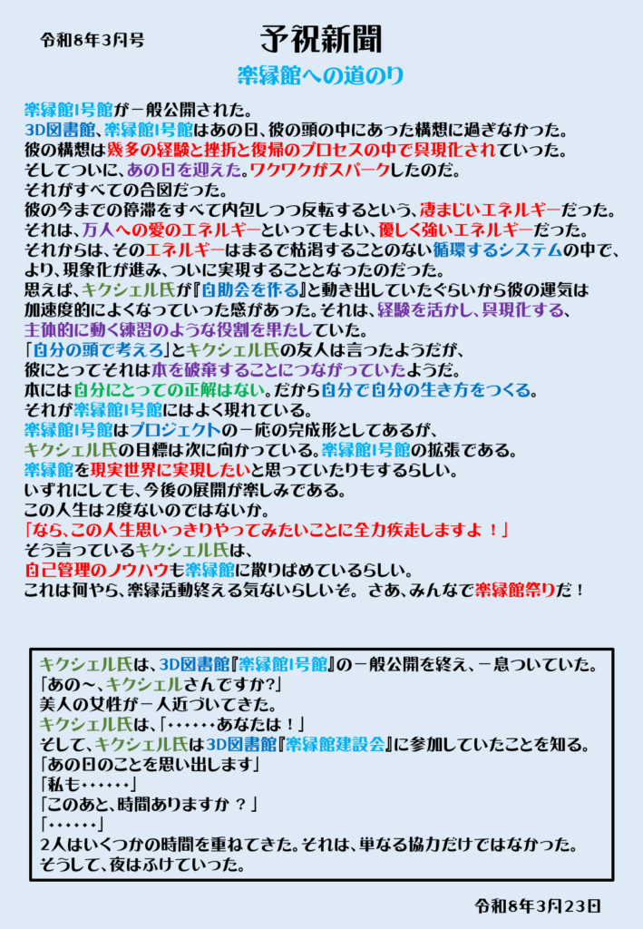 前回までの『予祝新聞』はリブメイ館をガチガチに固めていましたが、強く願いすぎたのでしょう。